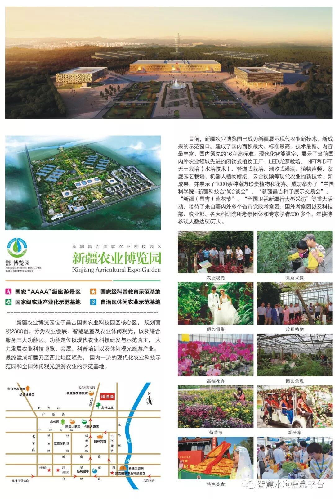 归档时间:2019-08-22会议地点:新疆东升鸿福大饭店 地 址:新疆昌吉州昌吉市北京南路 51 号 主办单位: 中国水利企业协会智慧水利分会 北京河湖智慧水利技术中心 协办单位: 昌吉州水利局 新疆农业大学 石河子大学 承办单位: 新疆智慧灌溉产业研究院 新疆昌吉国家农业科技园区 石河子大学水利建筑工程学院  北京中水润华信息咨询有限公司 支持单位: 全国节约用水办公室 中国水利企业协会 农业农村部全国农业技术推广服务中心 中国水利水电科学研究院 中国农业大学 河北工程大学 河海大学 新疆大学 排名不分先后 ◆ 康绍忠   中国工程院院士、中国农业大学教授 ◆ 邓铭江   中国工程院院士、新疆科协副主席、新疆额河建管局局长 ◆ 陈学庚   中国工程院院士、石河子大学教授 ◆ 张志彤   中国水利企业协会会长、水利部参咨委副主任 ◆ 张清勇   全国节约用水办公室副主任 ◆ 张金宏   中国水利企业协会副会长、研究员 ◆ 高祥照   农业农村部全国农业技术推广服务中心首席专家 ◆ 杜   森   农业农村部全国农业技术推广服务中心节水处处长   ◆ 高占义   国际灌排委员会名誉主席、中国水利水电科学研究院原总工   ◆ 李纪人   中国水利企业协会智慧水利分会会长、中国水利水电科学研究院副总工  ◆ 李益农   中国水利水电科学研究院水利研究所所长 ◆ 肖新民   水利部科技推广中心推广与产业处原处长 ◆ 黄修桥   中国农业科学院/水利部农田灌溉研究所所长 ◆ 郭   新    昌吉州水利局局长 ◆ 张明清   昌吉国家农业科技园区党工委书记 ◆ 李广友   塔城地区水利管理处处长 ◆ 陈金水   河海大学教授  ◆ 杨培岭   中国农业大学教授    ◆ 石建初   中国农业大学副教授   ◆ 周新志   四川大学智能控制研究所所长 ◆ 梁一飞   内蒙古自治区水利水电勘测设计院副总工 ◆ 蒋平安   新疆农业大学校长 ◆ 何新林   石河子大学水利建筑工程学院院长 ◆ 张江辉   新疆水利水电科学研究院党委书记、副院长 ◆ 尹飞虎   新疆农垦科学院党委书记、副院长 ◆ 梁   飞   新疆农垦科学院副研究员 ◆ 周建平   新疆大学机械工程学院院长、教授、博导 ◆ 马英杰   新疆农业大学水利与土木工程学院副院长 ◆ 马道坤   新疆智慧灌溉产业研究院院长 大会总体安排 组织机构 主要议题  组织机构 乘车路线 组织机构 2019智慧灌溉与高效节水高峰论坛·新疆站将于8月27-30日在新疆昌吉召开。新疆论坛期间,第十届中国科学院—新疆科技合作洽谈会将同期在园区举办,“科洽会”是中国科学院与新疆自治区政府和新疆生产建设兵团联合组织的全方位、高层次、多领域的科技合作交流的盛会。“科洽会”涉及现代农业、新材料、电子信息、先进制造、生物技术等多个领域。  “科洽会”往届回顾 转发有礼 凡转发本次"2019智慧灌溉与高效节水高峰论坛"链接到朋友圈的朋友,均可免费获得本次会议演讲课件(PPT)电子版一份。获取方式——请添加组委会官方微信:18910719688(给老师回复:“转发&PPT”即自动可弹出链接供您填写登记)。待本次会议结束后,由组委会统一以邮件或者短信形式发送演讲报告课件(PPT)至转发者。 ☆☆☆ 长按二维码“识别” “扫一扫”在线报名 → 瓜果飘香,大美新疆等你来哟!