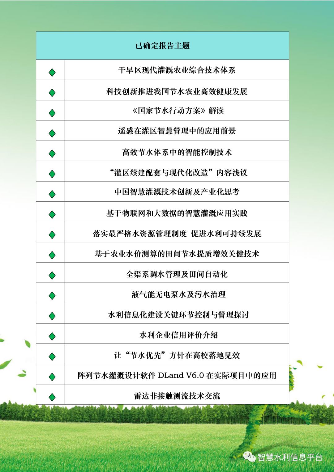 最新通知 ▏8月27-30日,2019智慧灌溉与高效节水高峰论坛