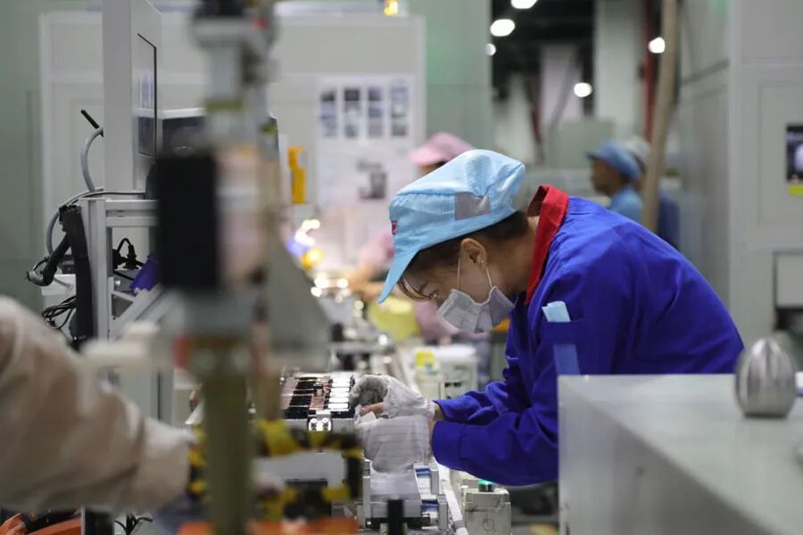 7月28日,在西宁市南川工业园区的青海比亚迪动力电池工厂内,工作人员在生产车间作业。