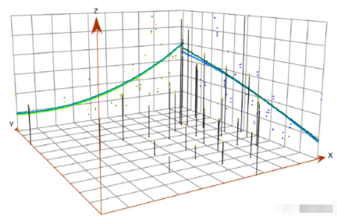 △三维透视图,X轴和Y轴分别表示指向东方和北方的基本方向,高度值(Z轴值)为灌溉水利用系数。