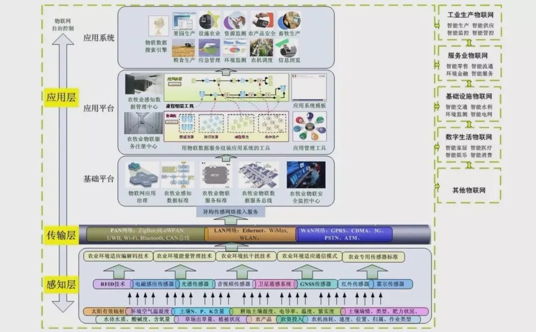 农业物联网,即通过各种仪器仪表实时显示或作为自动控制的参变量参与到自动控制中的物联网。可以为温室精准调控提供科学依据,达到增产、改善品质、调节生长周期、提高经济效益的目的。